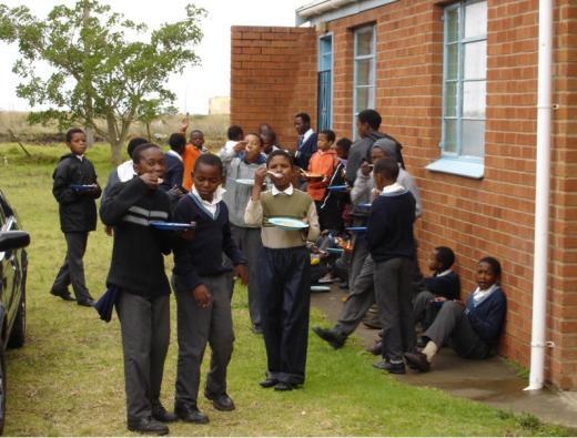 Es gibt eine Grund- und eine Mittelschule in der Nähe der Pfarrkirche. Die Mittelschule wandte sich an die Pfarrei mit der Bitte um eine Schulspeisung. Die Kinder hätten Hunger und könnten deshalb nicht lernen. Soweit der indische Pfarrer auf Spendengelder zurückgreifen kann, kochen Frauen vom St. Anna - Frauenbund eine warme Mittagsmahlzeit in der winzigen Pfarrheimküche für ca. 80 Kinder. Da die Spenden nicht für alle reichen, wechseln die einzelnen Jahrgangsstufen bei der Schulspeisung ab. Es gibt eine dicke Suppe aus weißen Bohnen, Mais, Gemüse und einem Hauch von Fleischbrühe, die den Magen wärmt und satt macht.