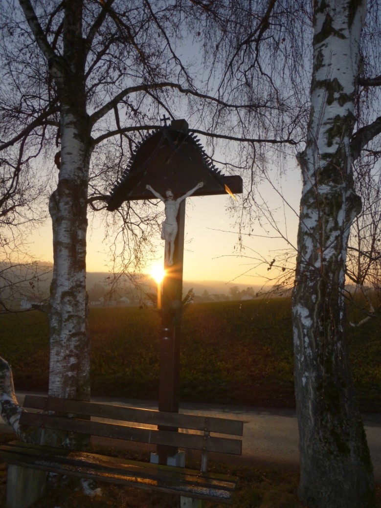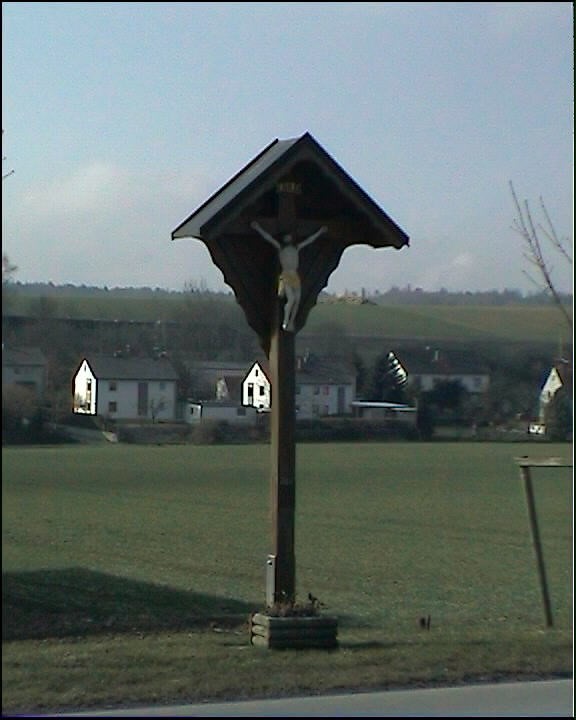 Ähnlich wie der Lutzenbauer hat auch die Familie Gori (Rößle) ein Kreuz auf ihrer Flur aufgestellt und damit Zeugnis für ihren christlichen Glauben abgelegt.