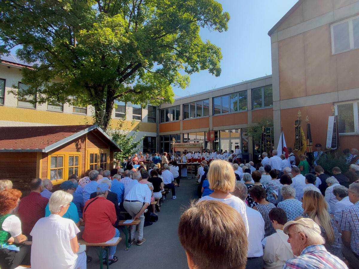 Die Pfarreiengemeinschft Meitingen feierte das Fronleichnamsfest zentral mit einem Festgottesdienst auf dem Pausenhof der Grundschule in Herbertshofen.