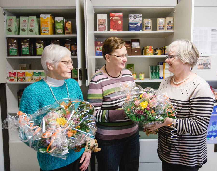 Achzehn Jahre lang haben sich Emmi Siegl und Gertraud Künzl (auf dem Bild von links) für den fairen Handel in der Pfarrei St. Clemens engagiert. Jetzt wurden die beiden aus ihrem Ehrenamt verabschiedet.