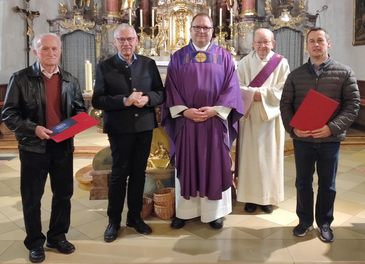 36 Jahre hat Alfons Büchele in St. Clemens als Kirchenpfleger gewirkt. Gemeinsam mit Josef Steppich, der 18 Jahre Kirchenverwaltungsmitglied war, und Thomas Asam, der sich dort zwölf Jahre eingesetzt hat, verabschiedete ihn Pfarrer Gerhard Krammer feierlich in der Abendmesse am Wochenende.