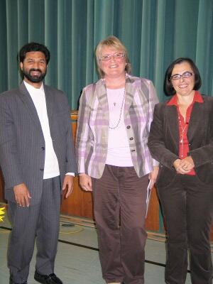 Das Bild zeigt Frau Leimer zusammen mit Pfarrer Johnson und Frau Schey.