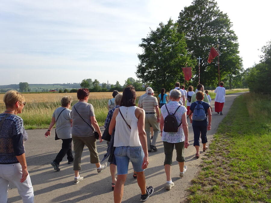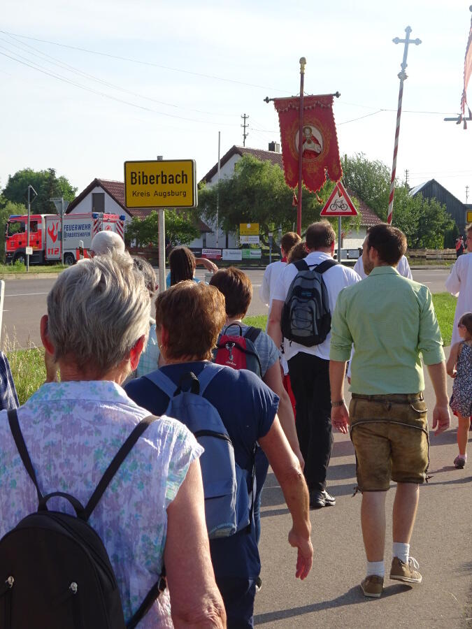 Den weitesten Weg nahmen dabei die Langenreichener auf sich, sie hatten auch wie alljährlich ihr Wallfahrerkreuz dabei. Eine große Ministrantengruppe aus Herbertshofen sorgte mit ihrer Dienstkleidung und den mitgeführten Fahnen für ein deutliches Zeichen unterwegs und auch im Gottesdienst: Wir spüren, dass da einer kommt, der uns wichtig ist.