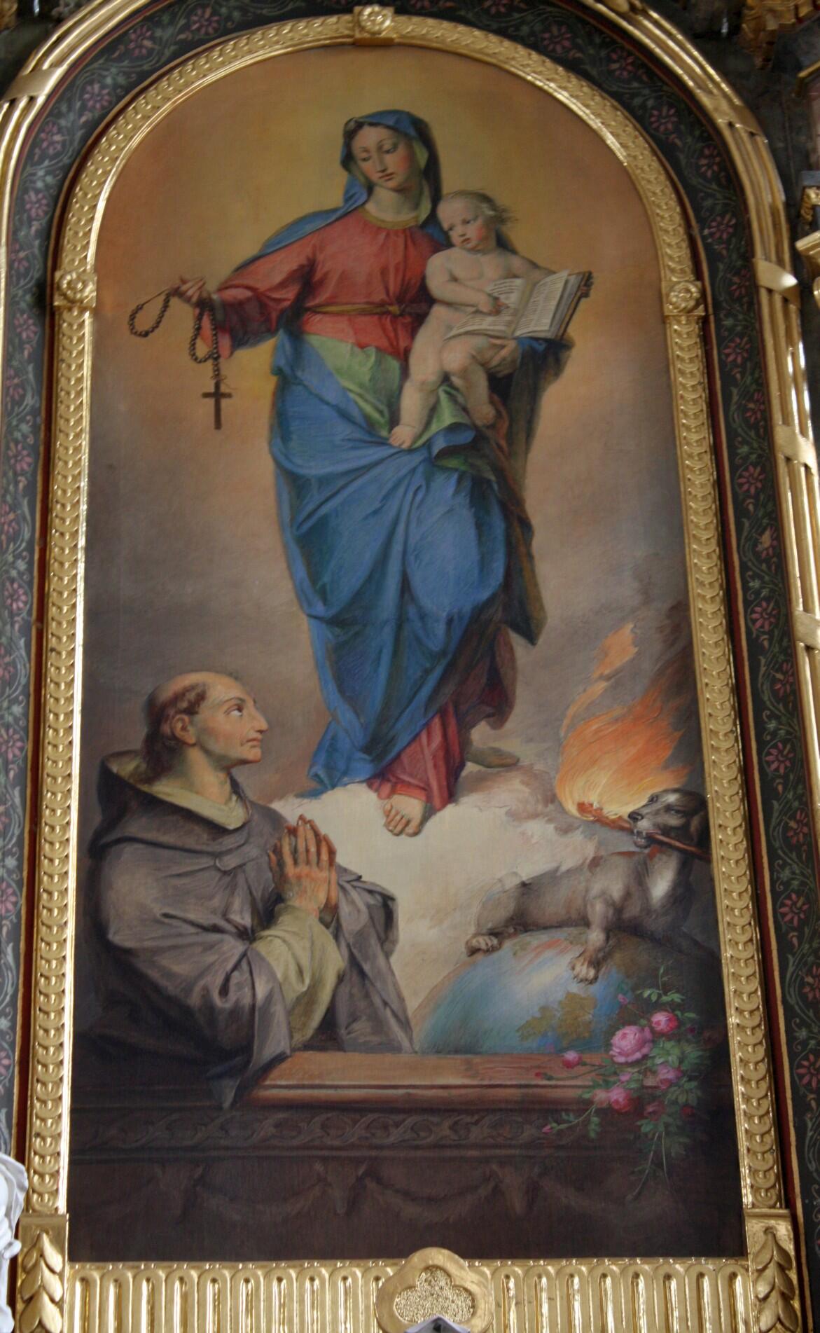 Am rechten Seitenaltar (Marienaltar) stehen die Figuren: links die heilige Katharina und rechts heilige Barbara. Die beiden kerzentragenden Engel und Kruzifix sind wie auf dem gegenüberliegenden Seitenaltar neugotisch. Das Altarblatt ist das letzte Bild, das Johann Caspar malen konnte, bevor er erblindete. Maria, die Frau vom Rosenkranz mit heiligem Dominikus hat es zum Thema. Oben im ovalen Blatt der heilige Aloysius.