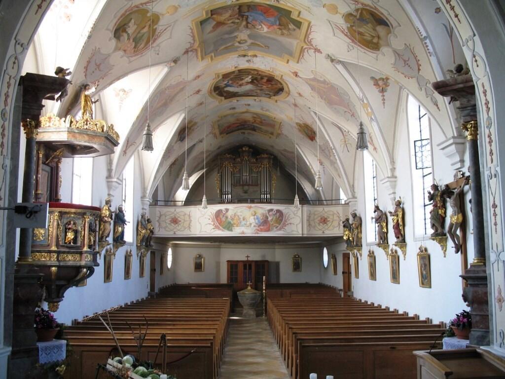 Beachtenswert sind noch die viel beachtete Anna Selbdritt (um 1700) in der Südwand des Chores, die zwölf Apostel (1730) des Friedberger Bildhauers Bartholomäus Öberle und die reich verzierte Kanzel (17. Jh.) mit ihrem ausladenden, polygonalen Corpus, in den die vier Evangelisten eingelassen sind.