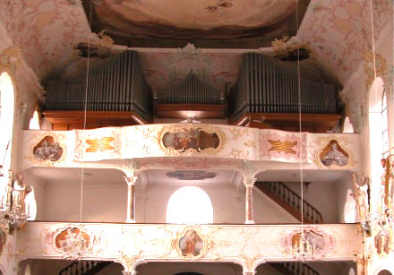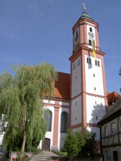 Über die Gestalt der Pfarrkirche vor dem Neubau im 18. Jh. geben die Quellen keine näheren Auskünfte. Auch einige spärliche Grabungsbefunde von 1970/73 brachten nur fragmentarische Erkenntnisse über vermutlich zwei mittelalterliche Bauphasen. Erhalten blieb allein der im 16. Jh. in noch gotisierenden Formen aufgeführte Turm. Die alte Kirche, ein bescheidener Bau mit Holzdecke und drei Altären, wurde im 17. Jh. verschiedentlich umgestaltet und erweitert. Da sie trotzdem der angewachsenen Pfarrgemeinde nicht mehr genügte und Zeichen von Baufälligkeit aufwies, wurde schon um 1730 ein Neubau erwogen. Erst um die Jahrhundertmitte konnten die nötigen Mittel aufgebracht werden.