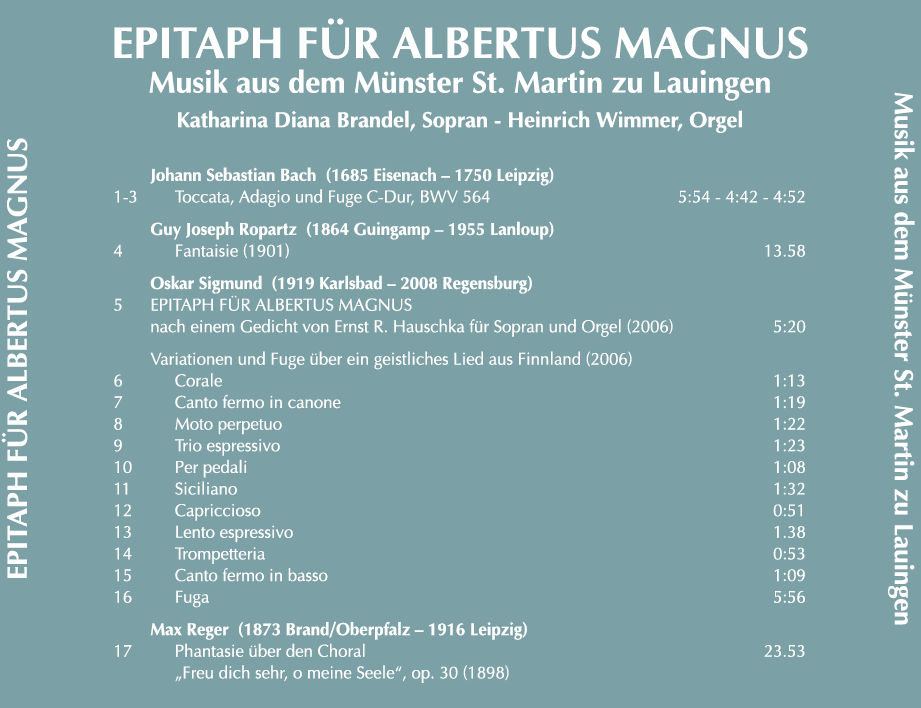Die Orgel-CD EPITAPH FÜR ALBERTUS MAGNUS zum 500. Jahrestag der Vollendung des Lauinger Münster (1521 / 2021) kann im Pfarramt oder in der Sakristei erworben werden.