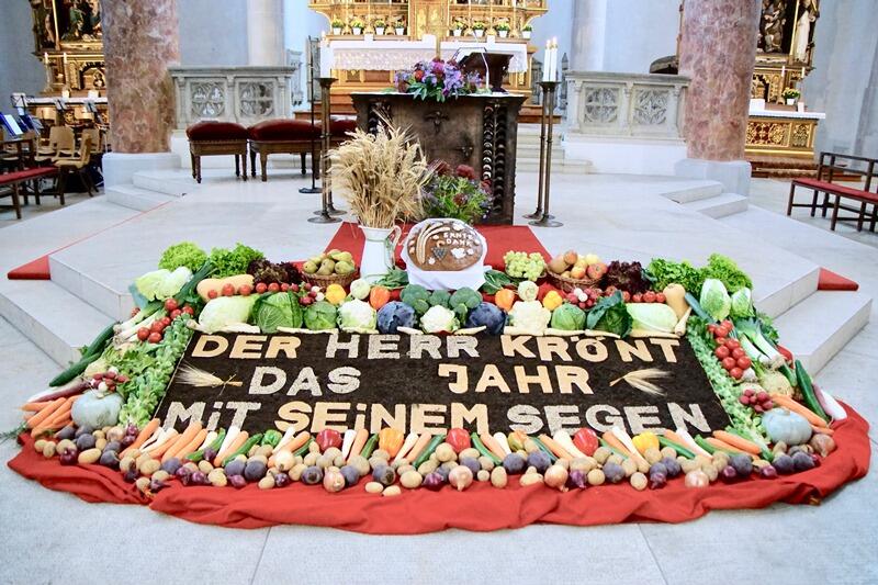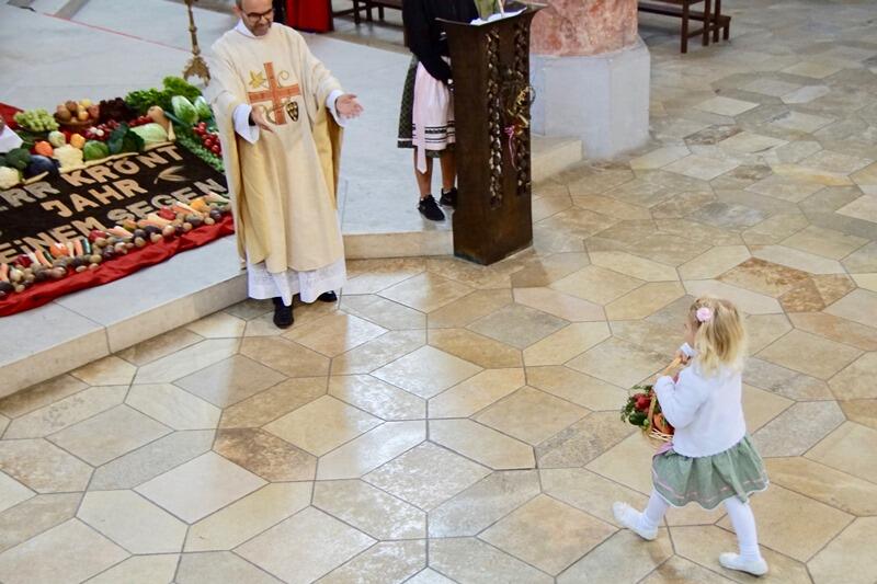 Zum Erntedankfest lud die Pfarrei St. Martin Lauingen am Sonntag, den 6. Oktober 2019 ein. Mitgestaltet wurde dieser Gottesdienst vom Bayrischen Bauernverband, Ortsgruppe Lauingen. In seinen Begrüßungsworten erinnerte Stadtpfarrer Raffaele De Blasi an den reich gedeckten Erntealtar, der das Spiegelbild eines reich gedeckten Tisches ist, an den wir uns jeden Tag setzen. An diesem besonderen Tag danken wir nicht nur Gott am Ende der Erntezeit dafür, dass er die Früchte, das Gemüse und das Getreide hat gedeihen lassen sondern auch an die vielen Landwirte, die ihre Felder bestellt und am Ende geerntet haben. Er erinnerte auch daran, dass wir mit unserer Umwelt sorgsam umgehen sollen und Gott nicht aus den Augen verlieren sollen. Gott hat uns in diese Welt hineingestellt und sie uns anvertraut. Wir tragen Verantwortung nicht nur an uns, sondern auch an allen Lebewesen und auch für die kommenden Generationen. Eine kleine Geschichte erzählte von einer Spinne, die ein Spinnennetz baut. Dieses Netz besteht aus vielen einzelnen Fäden so wie unsere Welt. Diese stehen z. B. für Frieden, Freiheit, Gerechtigkeit und vieles mehr. Das Netz ist unser Lebensraum. Zerstören wir dieses Netz, kommt es zu Katastrophen.