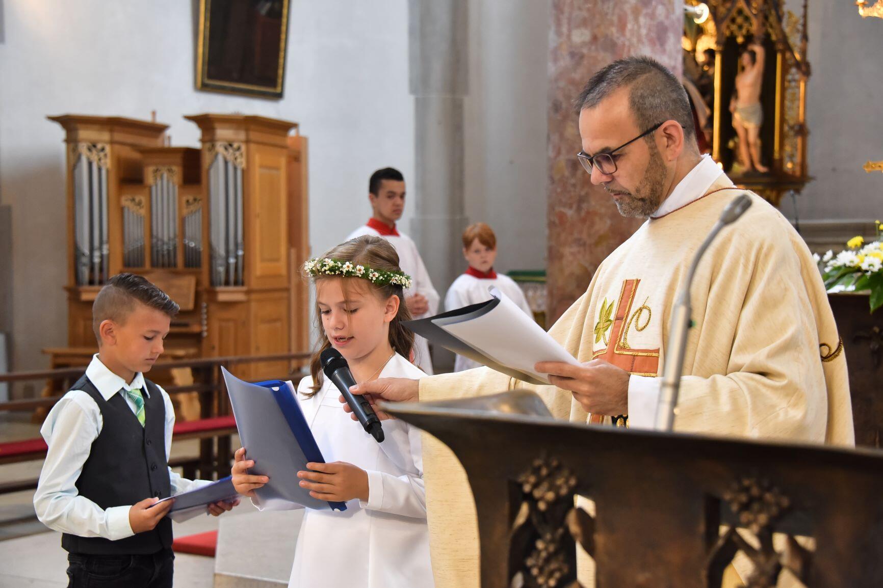 Coronabedingt musste die Feier der Erstkommunion auf Anfang Juli verschoben werden und in vier unterschiedlichen Gottesdiensten gefeiert werden, um den Schutzvorschriften gerecht zu werden.