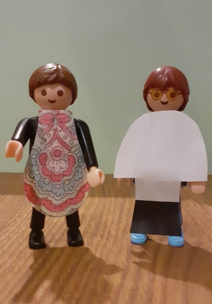 Gesagt, getan: Pfarrhelfer René Stiefenhofer fertigte ein Modell des Altarraumes des Lauinger Münsters an und arbeitete einige Playmobilfiguren seiner Tochter zu Lauinger Altardienern um, angefangen vom Pfarrer - wie gewohnt im üblichen barocken Messgewand - über den Pfarrhelfer bis hin zu den eigentlichen Hauptakteuren, den Ministranten; hinzu kamen mehrere Utensilien aus Playmobilschlössern und Ähnlichem, wie z. B. ein Kelch, Gläser oder ein Tablett.