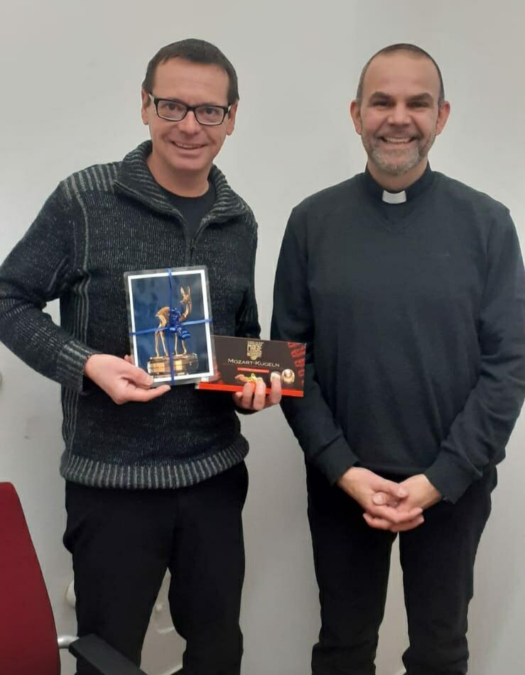 Für seine Mühen überreichte Stadtpfarrer Raffaele De Blasi Herrn Stiefenhofer einen Bambi, den Ehrenfilmpreis, verbunden mit einem großen Dank!