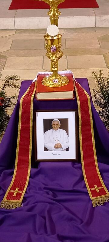 Für Samstag, den 7. Januar 2023 lud Stadtpfarrer Raffaele De Blasi ins Martinsmüster zum Requiem für den am 31.12.2022 im Alter von 95 Jahren verstorbenen emeritierten Papst Benedikt XVI. ein.