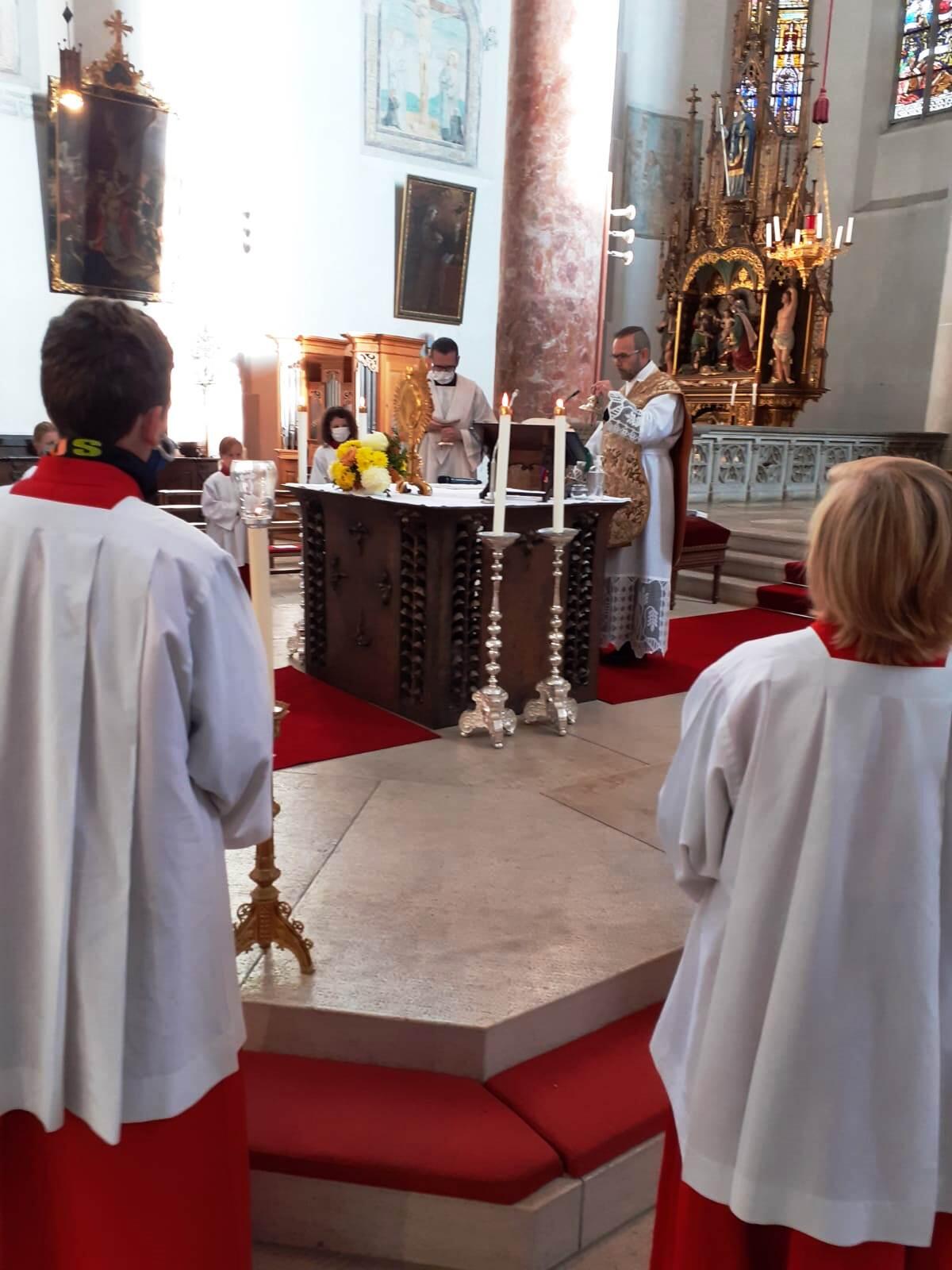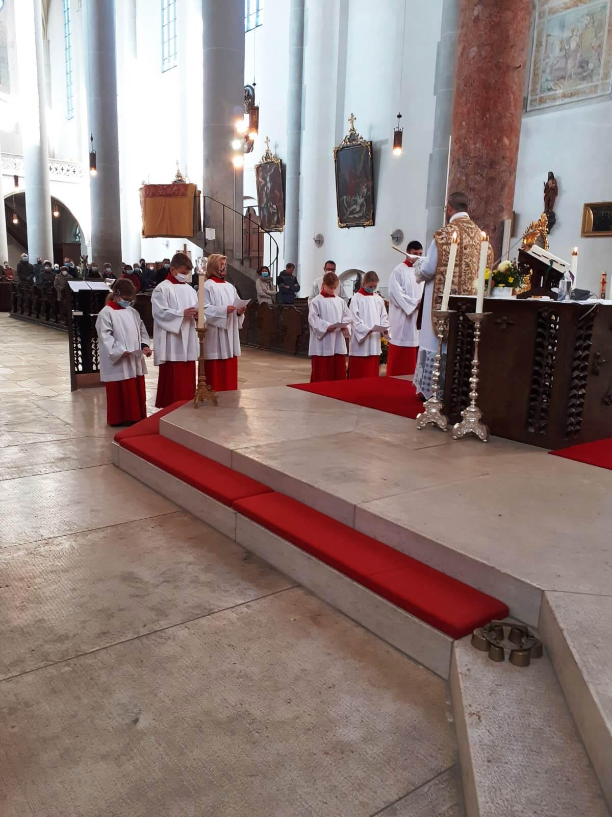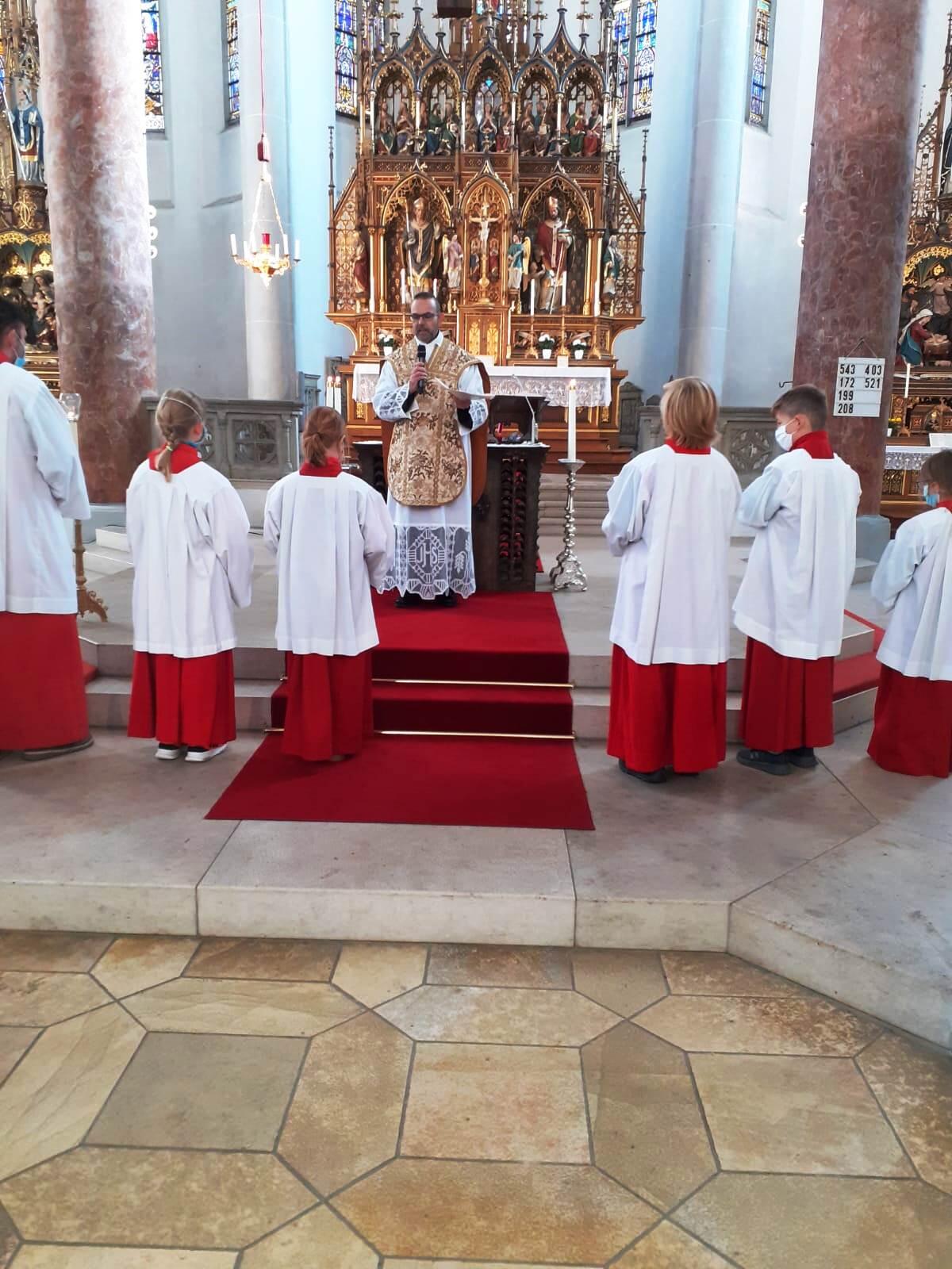 Im Rahmen des Festgottesdienstes zum Gedenken an den hl. Albert den Großen wurden die neuen Ministrantinnen und Ministranten sowie ihr zukünftiger Dienst von Stadtpfarrer Raffaele De Blasi gesegnet.