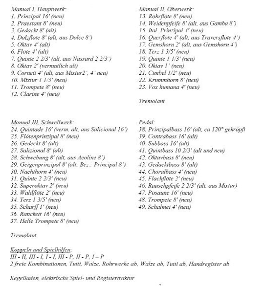 Disposition der Orgel in diesem Zustand (zum Vergrößern auf das Bild klicken):