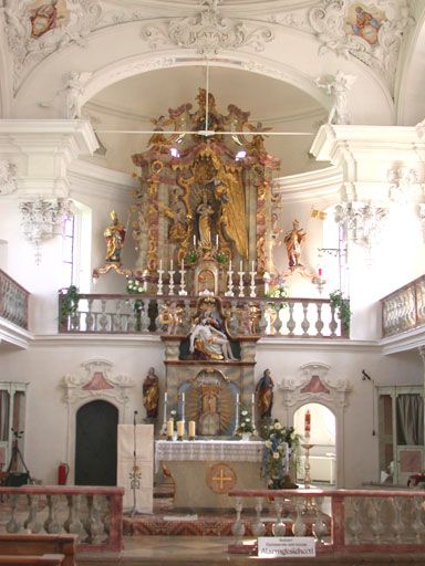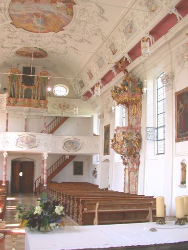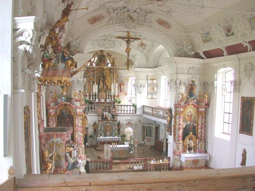Die Gestalter des Baues, Programmentwerfer, Architekt Stukkator und Maler standen auf der Höhe der geistig-künstlerischen Entwicklung ihrer Zeit und Landschaft; sie schufen in Anlehnung an die heimatliche Überlieferung einen Raum, der in seiner zarten, harmonischen Übereinstimmung von Architektur, Stuckdekoration und Fresko auf die großen Kirchenräume des schwäbisch-bayrischen Rokoko vorausweist.