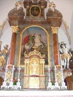 Hochaltarbild des Hl. Georg um ca. 1690 mit den Figuren des Hl. Wolfgangs und des Hl. Sebastians Patrozinium: Hl. Georg, 23. April |
