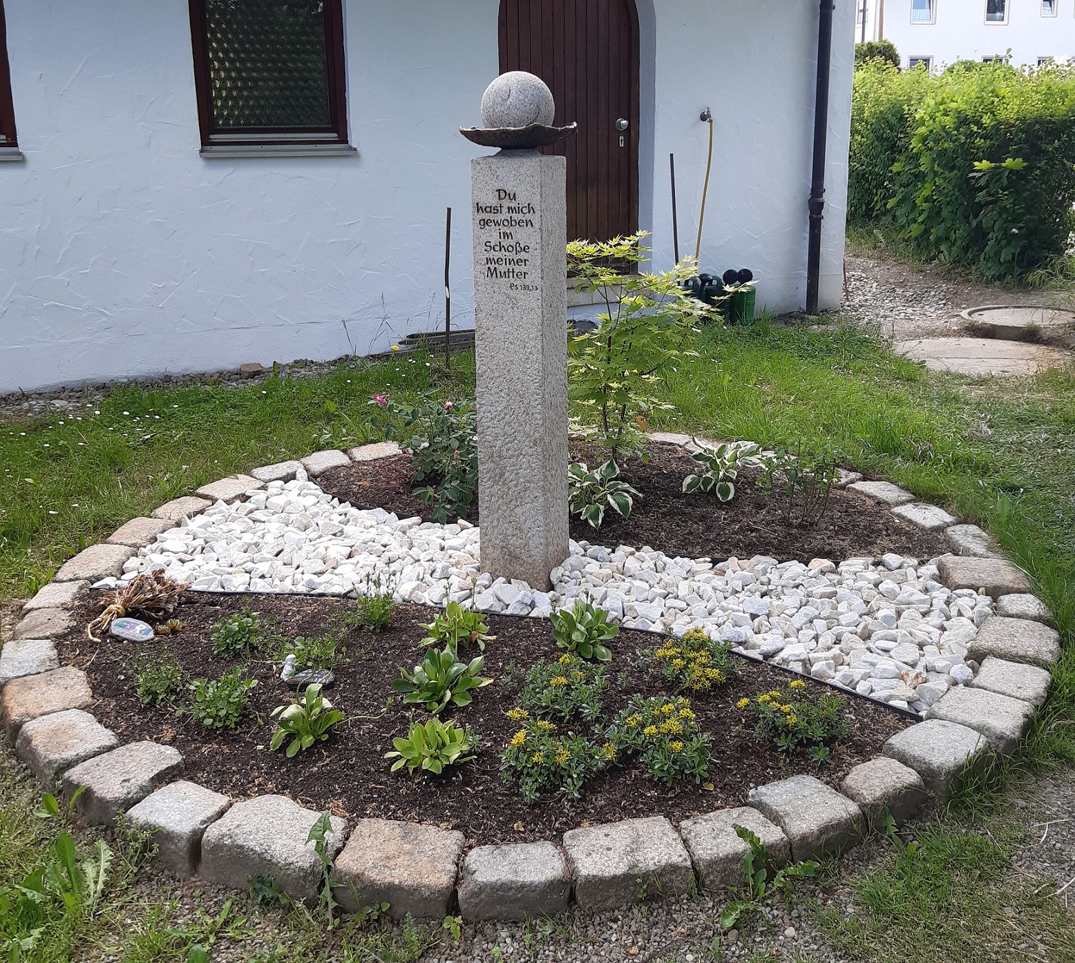 Sternenkinder-Grab: Im Friedhof in Maria Steinbach gibt es seit 2006 eine Grabstätte für Früh- und Fehlgeburten. Das Sternenkinder-Grab wurde im Frühjahr 2023 neu gestaltet. Mit der Änderung des Bestattungsrechts zum 1.1.2006 wurde gesetzlich geregelt, dass tot geborene Kinder (Fehl- Früh- oder Totgeburten, auch Föten aus Schwangerschaftsabbrüchen) bestattet werden können und die Kommunen verpflichtet sind, eine entsprechende Grabstätte auszuweisen. Das nahmen Gemeinderätin Isolde Göppel und der damalige Wallfahrtspfarrer von Maria Steinbach P. Heinrich Mühlbauer zum Anlass, einen entsprechenden Antrag bei der Marktgemeinde Legau einzureichen. Daraus entstand ein interkommunales Projekt für den gesamten Illerwinkel, also für die Gemeinden Kronburg/Illerbeuren, Lautrach und Legau. Das Grabmal mit einer passenden Stele wurde auf dem Friedhof in Maria Steinbach errichtet. Auf ein religiöses Symbol wurde dabei bewusst verzichtet, denn es soll nicht nur katholischen und evangelischen Eltern, sondern Betroffenen jeder konfessionellen Bindung und ohne religiösem Bekenntnis gerecht werden. Eltern, die eine „glücklose Schwangerschaft“ erleben und kein eigenes Familiengrab besitzen, haben so die Möglichkeit, ihr Kind in einem speziellen Grab würdevoll zu beerdigen und das Kind muss kein Mindestgewicht mehr aufweisen, wie noch vor 1994. Üblicherweise geschieht die Bestattung anonym, je nach Wunsch mit oder ohne Priester, Namen werden nicht vermerkt. Die Eltern müssen nicht, können aber das Stückchen Erde auf dem Gräberfeld selbst gestalten. Offiziell obliegt die Pflege des Sternenkinder-Grabes der Marktgemeinde Legau. |