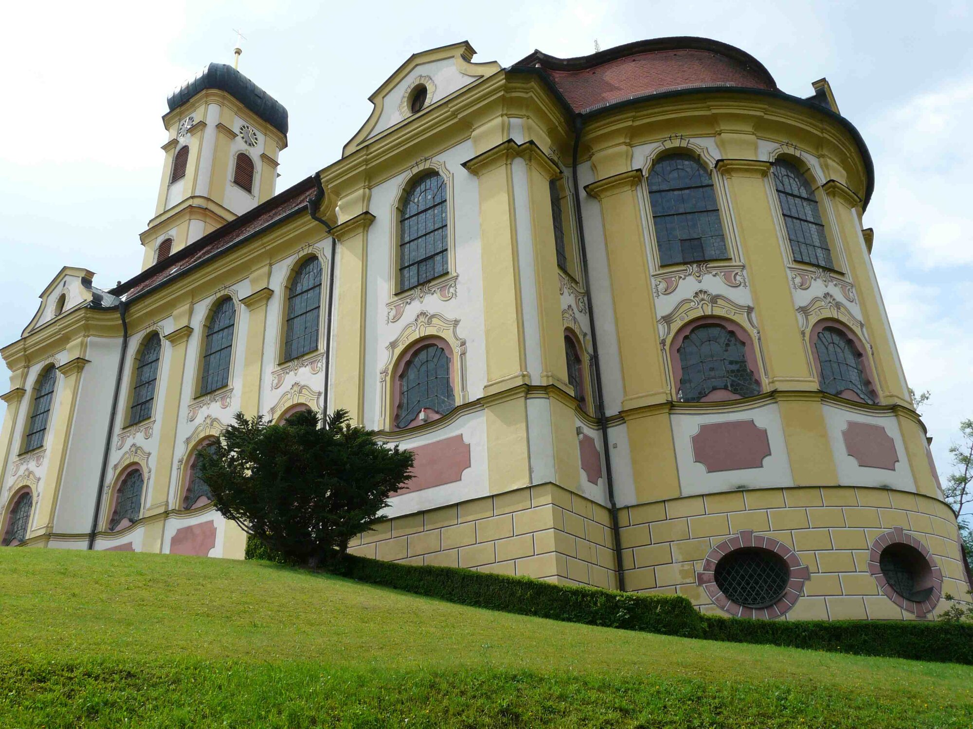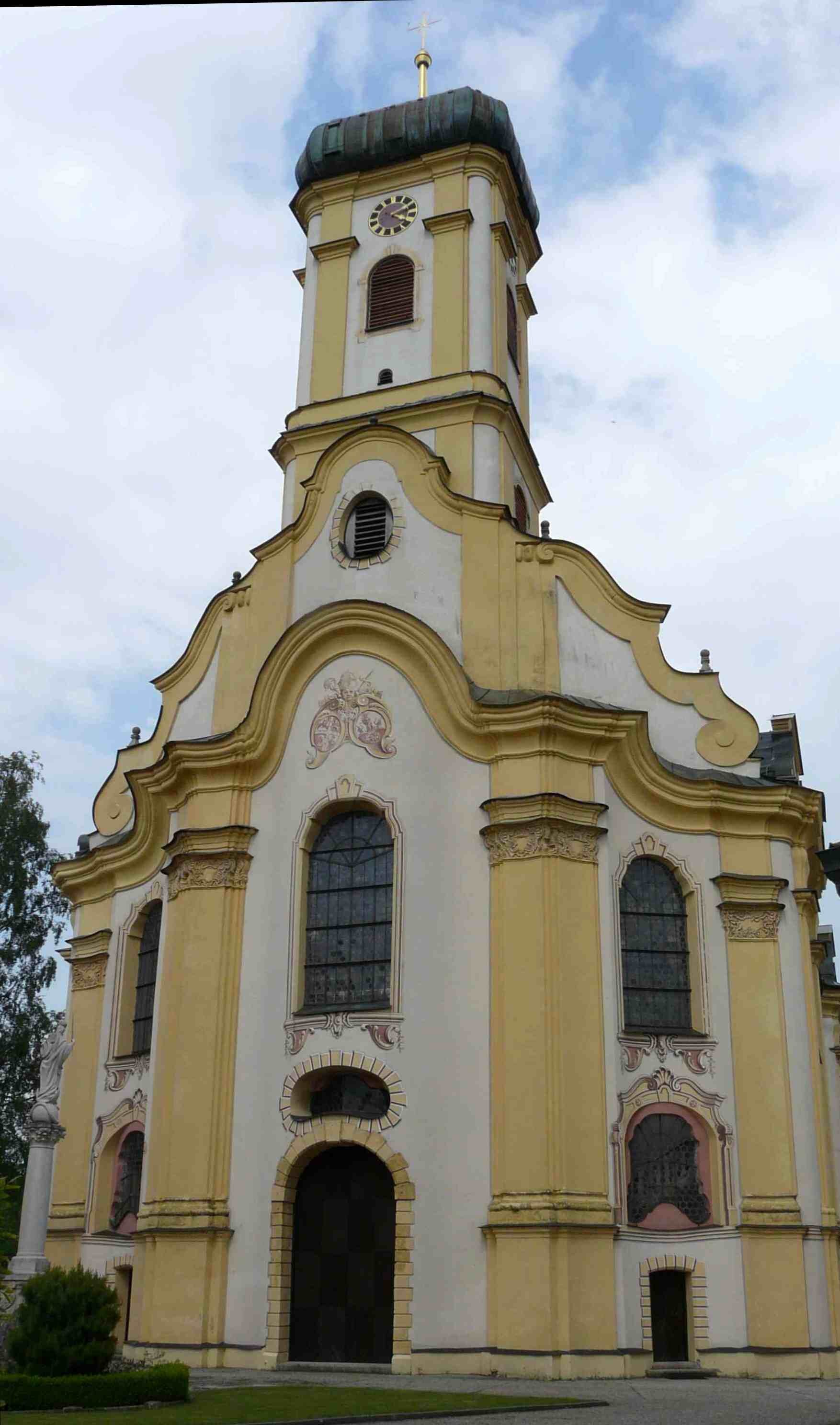 Nachdem der Pilgerstrom ab 1733, als die Marien-Wallfahrt offiziell anerkannt worden ist, enorm zunahm, war die vorhandene spätgotische, 1510 gebaute Kirche bald zu klein. Der Wallfahrtspfarrer und spätere Roter Abt Benedikt Stadelhofer betrieb den Bau eines größeren Gotteshauses, für das er sich als Architekt verantwortlich zeichnete.
