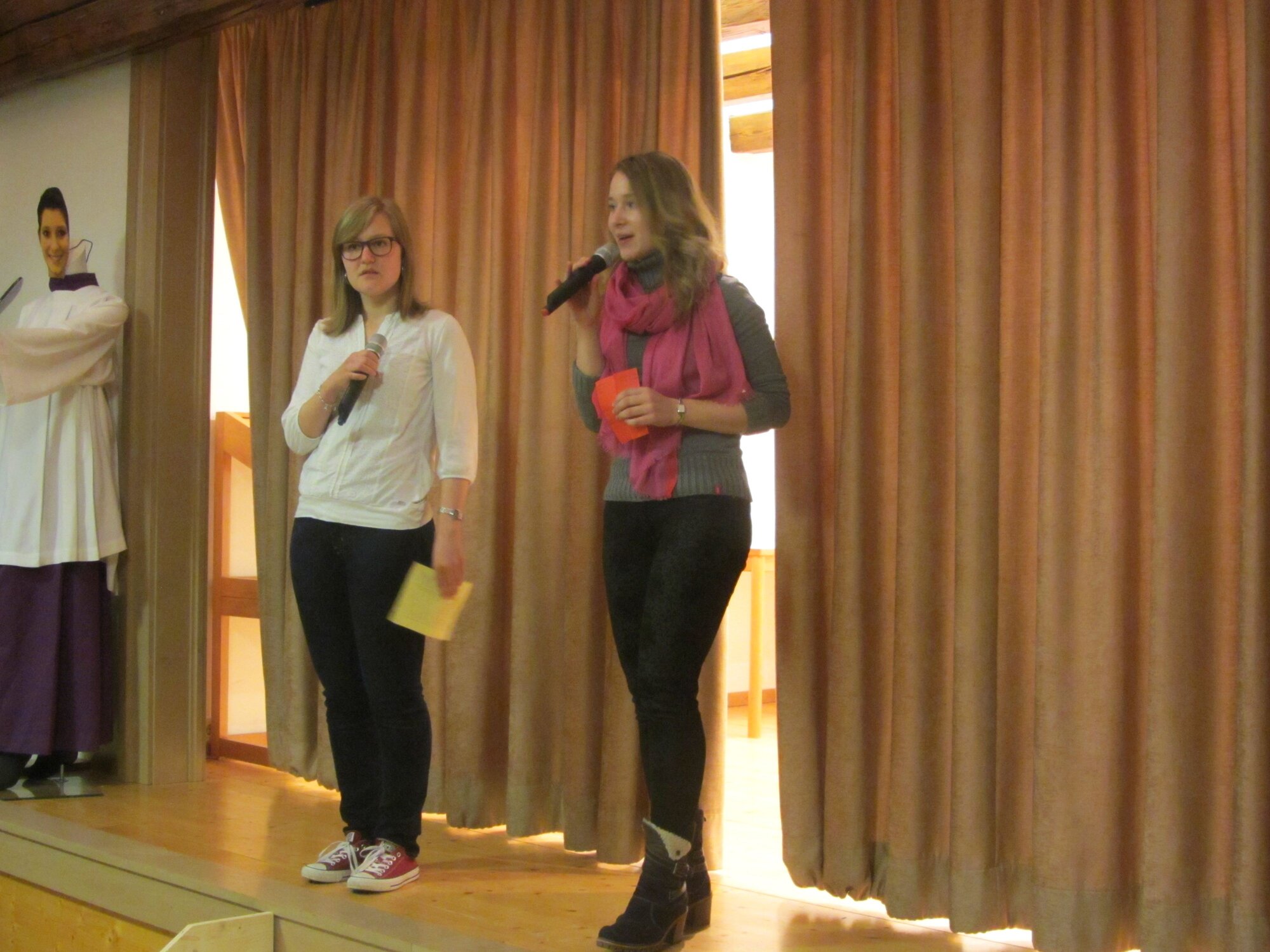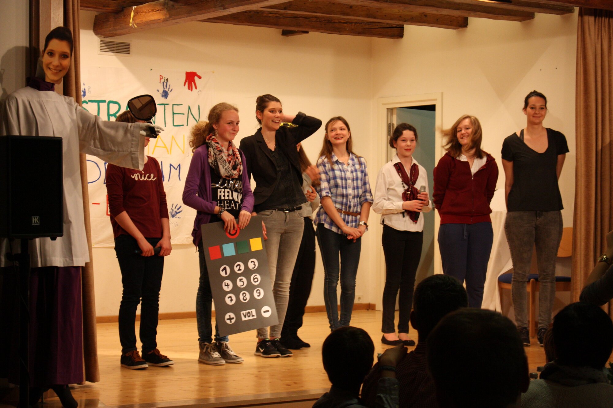 unsere Mädchengruppe führte das MINI-TV vor - verschiedene Fernsehformate die sie kreativ uns lustig mit den Ministranten in Verbindung brachten. Von Talk-Show mit Überraschungsgästen der Eltern bis hin zu Wettervorhersagen für die Regenwahrscheinlichkeit wenn der Kaplan die Messe hält war alles dabei