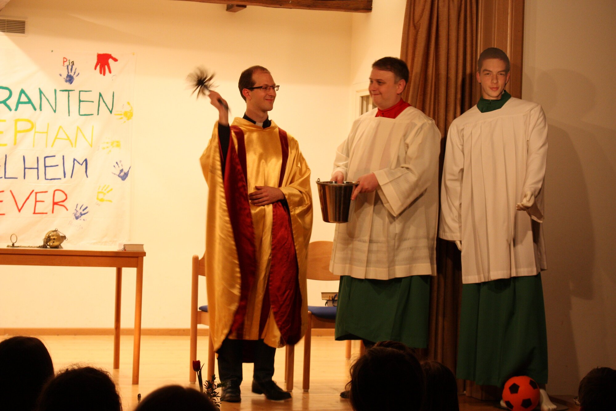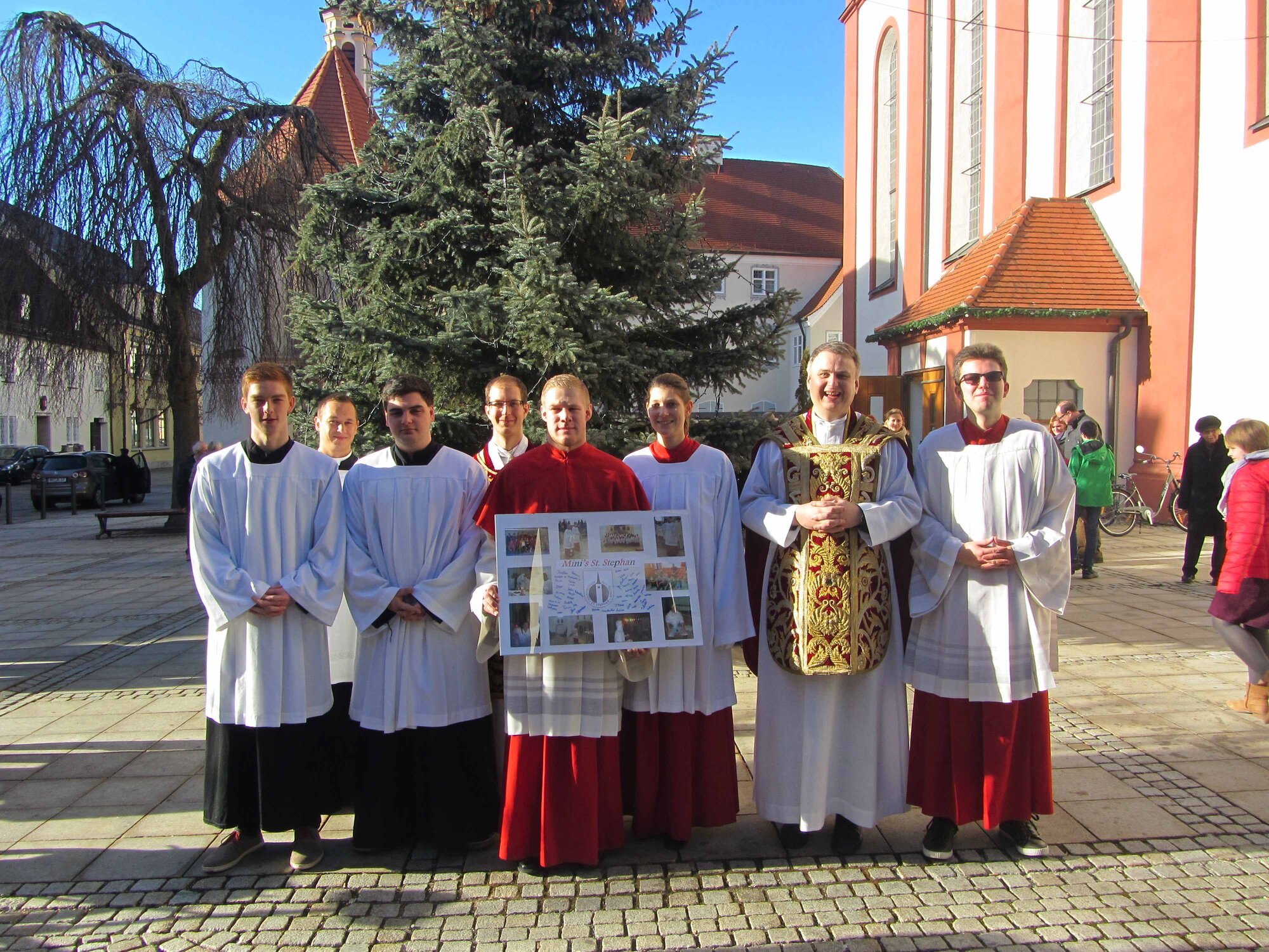 In der vom Kirchenchor feierlich umrahmten Messe zum Patrozinium des Hl. Stephanus wurde am 26.12.2015 von Stadtpfarrer Andreas Straub der bisherige Oberministrant Johannes Schwarz verabschiedet. Den großen Dank für sein Engagement in den vergangenen 5 Jahren als Leiter der über 100 Ministranten von St. Stephan drückte die versammelte Gemeinde durch einen kräftigen Applaus aus. Ebenso herzlich wurde der neue Oberministrant, Julian Fischer, begrüßt, der nun mit der bisherigen Oberministrantin Laura Hofmann für die Gemeinschaft der Ministranten zuständig ist. Zur Seite gestellt wurden ihnen zwei weitere Verantwortliche, Dominik Tietze und Michael Weinzierl.