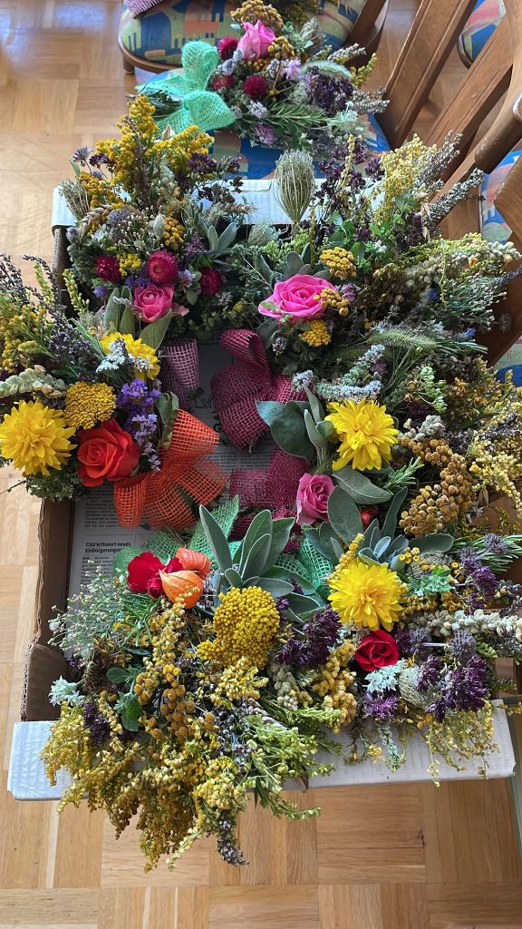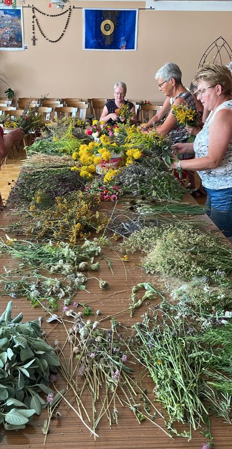 In St. Ulrich sammelt Renate Hartmann Tage vor Maria Himmelfahrt sehr viele Kräuter und einige Frauen helfen unter ihrer fachkundigen Anleitung beim Strauss binden. So werden ca. 100 Kräuterbuschen für eine Spende vor dem Gottesdienst an Maria Himmelfahrt angeboten.