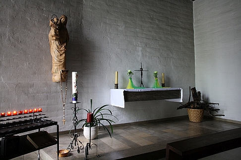 In der Marienkapelle brennen fast ununterbrochen von Gläubigen gestiftete Kerzen vor der aus Holz geschnitzten Marienstatue von Elmar Dietz. Hier wird oft der Rosenkranz gebetet. Die Kapelle bietet kleineren Gruppen Gelegenheit Gottesdienste zu feiern. Vom Abend des Gründonnerstag bis zum Karsamstag wird das Allerheiligste in der Marienkapelle auf dem Altar in einem besonderen Tabernakel zur Anbetung aufbewahrt. |