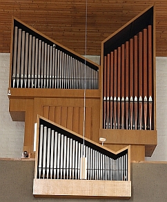 Der Organist Herr Stutz musste sich in den Anfangsjahren mit dem Provisorium einer kleinen, geliehenen Orgel behelfen. Am 3. Dezember 1972 wurde diese Orgel eingeweiht. |