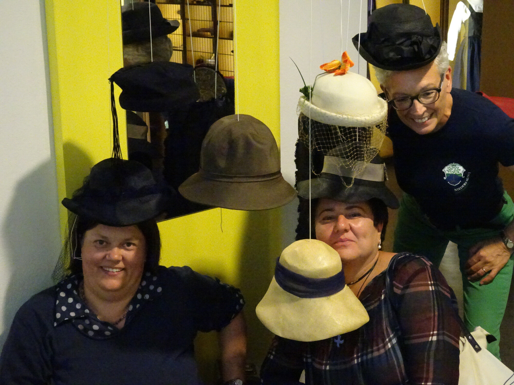 Dass ein Heimatmuseum nicht unbedingt eine trockene Materie sein muss, das konnten wir nicht nur durch die Museumsleiterin, sondern auch selbst erfahren, z.B. an den Hutmoden. |