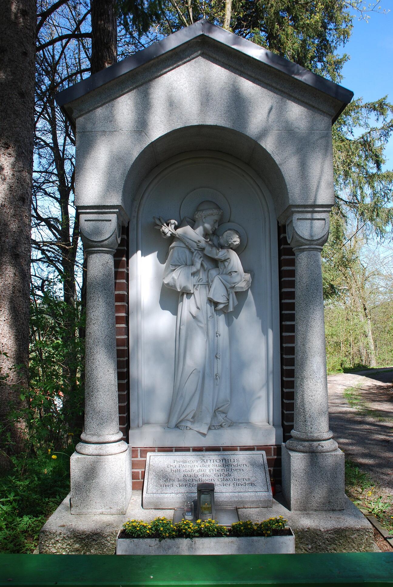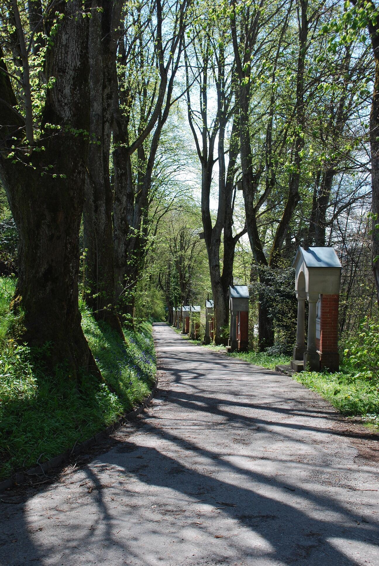 1857-1863 errichtete Steinmetzmeister Schwarz aus Kaufbeuren neue Kreuzwegstationen mit Bildern von Johannes Kaspar.