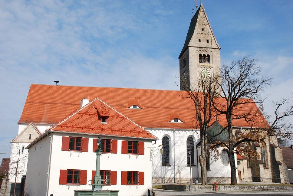 Um 1480 wurde die Kirche, die den heiligen Martin von Tours zum Kirchenpatron hat, eingeweiht. Möglicherweise wurde sie schon ca. 100 Jahre zuvor einmal geweiht, denn ein älterer Turm und Hinweise aus der Römerzeit lassen daraus schließen. Die Kirche wurde als "Wehrkirche" gebaut, um den Bürgern in Kriegszeiten Schutz und Wehr zu bieten. Um die Kirche und den anschließenden Friedhof war eine starke, große, zweistöckige Wehrmauer gebaut, deren Verlauf ungefähr der heutige Straßenrand anzeigt. Um 1560 brannte es in Obergünzburg und viele Häuser und ein großer Teil der Kirche fielen dem Brand zum Opfer. Als es dann auch 1804 zu einer großen Brandkatastrophe kam, in der wiederum viele Häuser niederbrannten, begann man 1805, die Befestigungsmauer und die Tortürme abzubauen, um Baumaterial zum Wiederaufbau der Häuser zu gewinnen. Der Friedhof war schon in der Zeit des 30jährigen Krieges, als die Pest wütete, auf den Nikolausberg verlegt worden. Seit 1684 gibt es deshalb um St. Martin keinen Friedhof mehr.