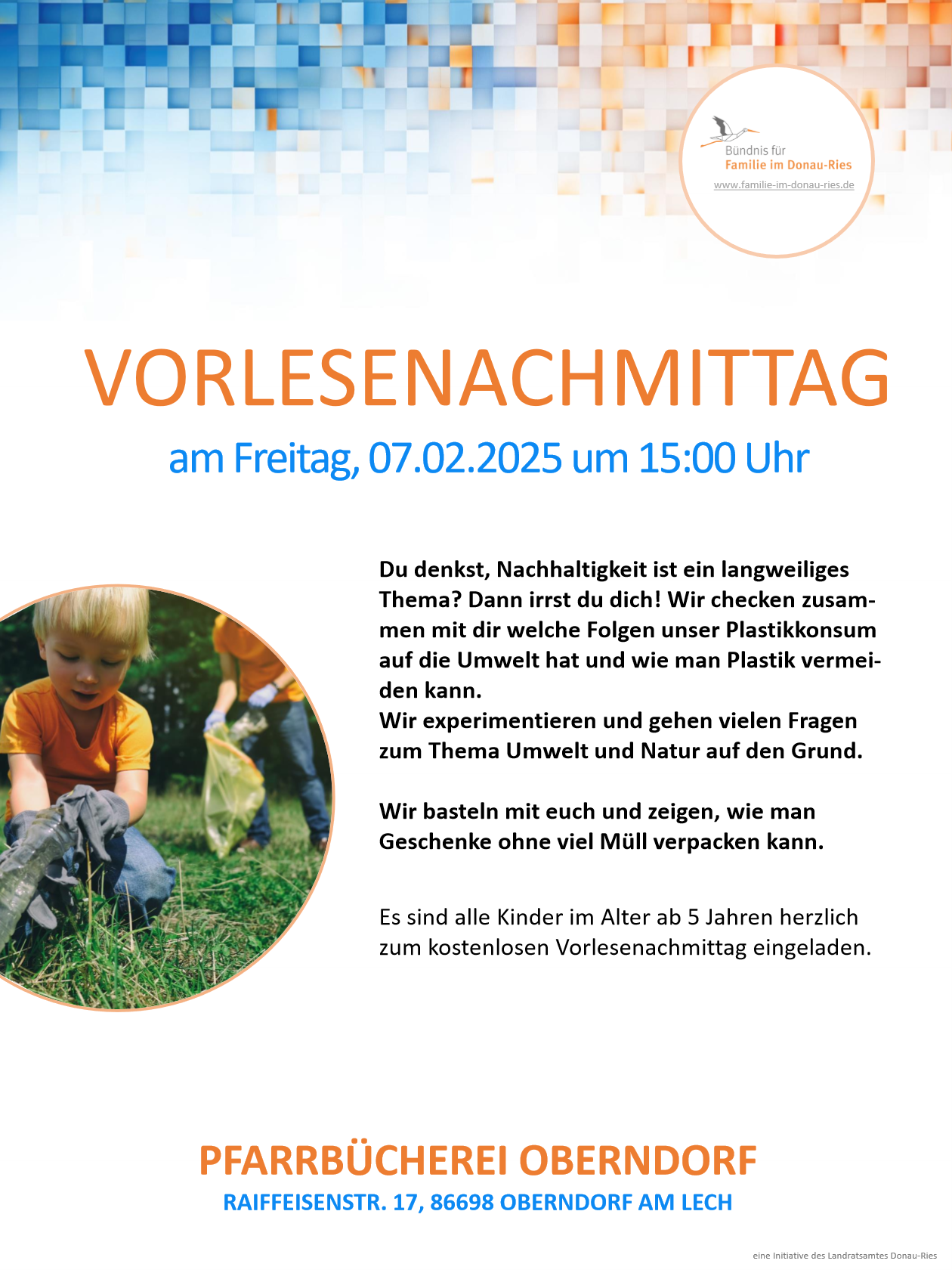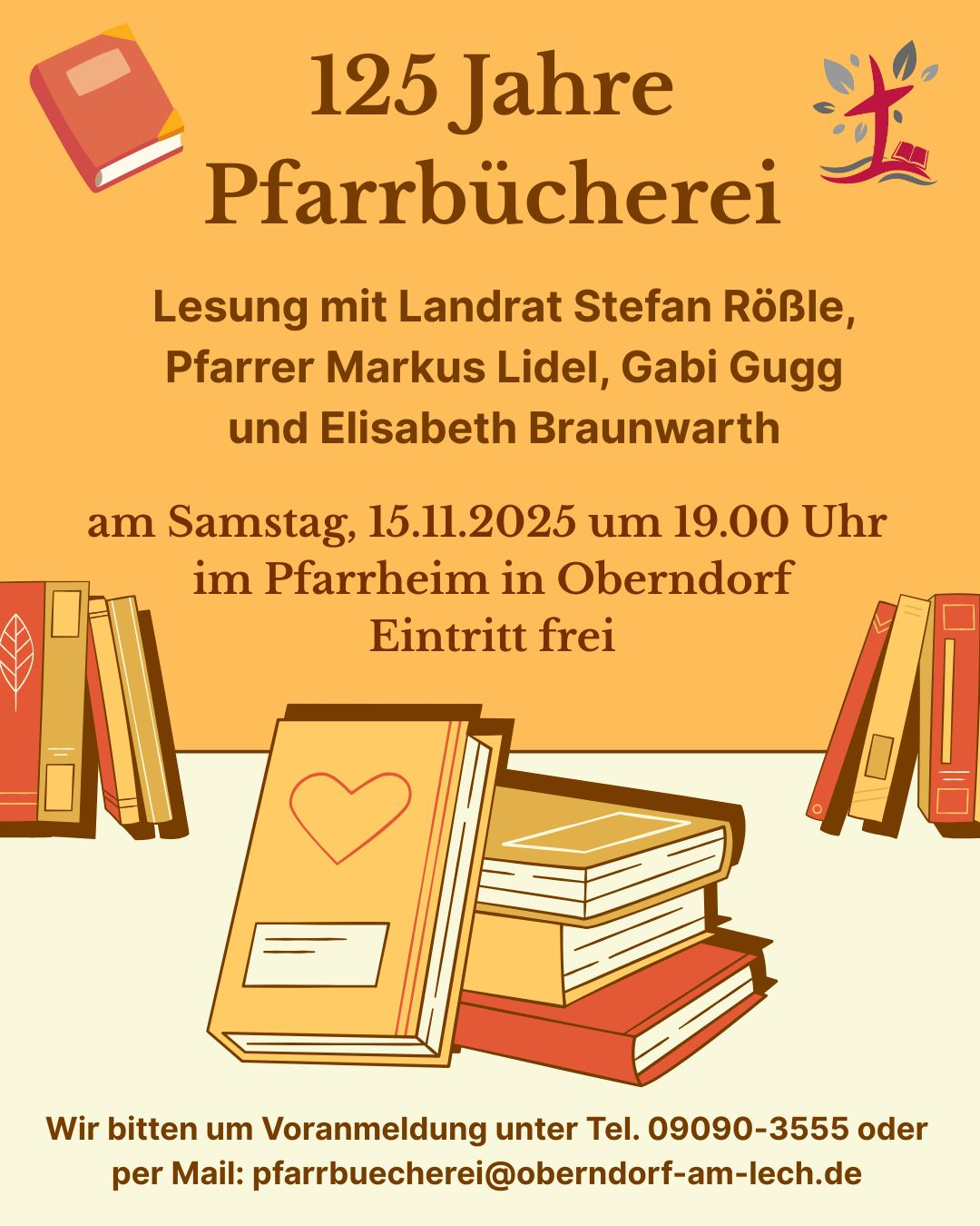 Somit sind wir nicht nur während den Öffnungszeiten erreichbar, sondern auch unter: pfarrbuecherei@oberndorf-am-lech.de
