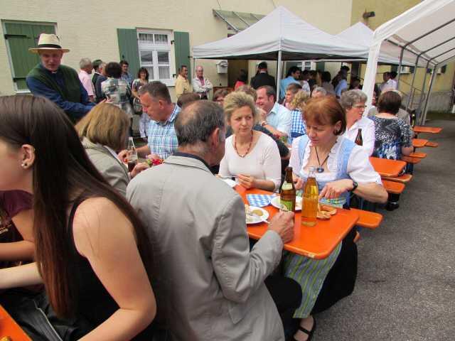 Bei schönem Wetter konnte der Pfarrgemeinderat unter freiem Himmel Weißwürste und Wiener anbieten. Der Festgottesdienst zum Patrozinium wurde musikalisch vom Kirchenchor, unter der Leitung von Martina Fahrner, gestaltet. Pfarrer Wolff bedankte sich nicht nur beim Chor sondern auch bei den Vereinen, die mit ihren Fahnenabordnungen teilnahmen. Ein Teil der Jugendlichen, die letzte Wochen gefirmt wurden haben im Gottesdienst Fürbitten vorgetragen.