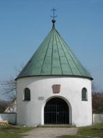 Im Schatten der Pfarrkirche verbirgt sich die 1954 errichtete Kriegergedächtniskapelle, die dem Gedenken der Opfer der beiden Weltkriege gewidmet ist. Dieser Rundbau mit Kegeldach, den der damalige Pfarrer Otto Portenlänger konzipiert und durchgesetzt hatte, wurde vom Baurat Eduard Haertinger entworfen und gestaltet. |