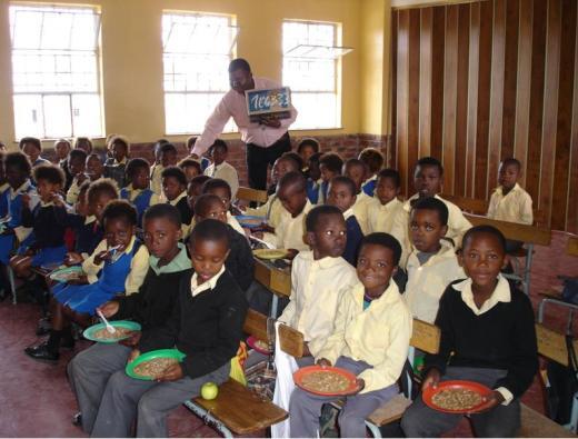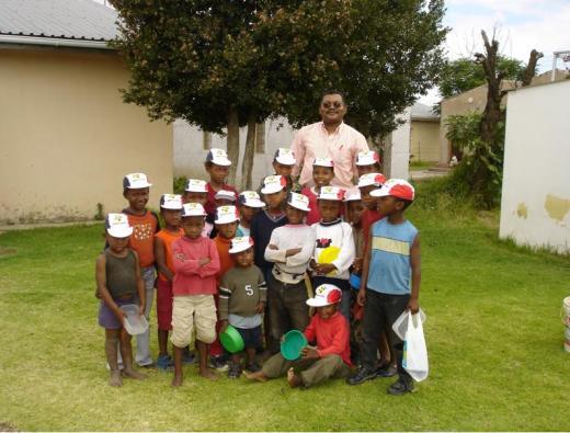 Zwischen King Williams’ Town und Stutterheim liegt das riesige Dorf Dimbasa mit drei Teilgemeinden. Die Menschen hier haben ihre Kirche selbst gebaut und bemalt. Father Gabriel schart die Kinder um sich. Er bringt 120 Kindern täglich warmes Essen in drei Schulen. Dazu fährt er auf ungeteerten, ausgeschlagenen Straßen über Land.In die Schule von Dimbaza gehen 1200 Kinder. Die Klassen haben teilweise 50 Schüler. Bücher, Hefte und Stifte reichen nicht für alle Kinder. Unser gespendetes Geld vom März 2006 wurde für Schulmaterial verwendet. Father Gabriel ermutigt die Menschen zur Selbsthilfe. Er will nicht, dass die Erwachsenen und Kinder in Passivität verfallen und darauf warten, was ihnen geschenkt wird. So werden auch nur die aller bedürftigsten Kinder eine begrenzte Zeit zur Schulspeisung zugelassen.