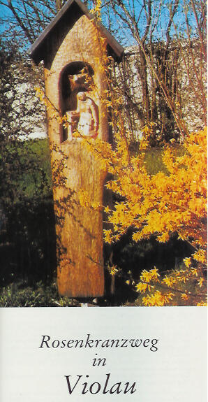 Die Rosenkranzstationen wurden 1987 vom Bildhauer Siegfried Moroder aus Mooreiche geschnitzt.