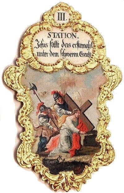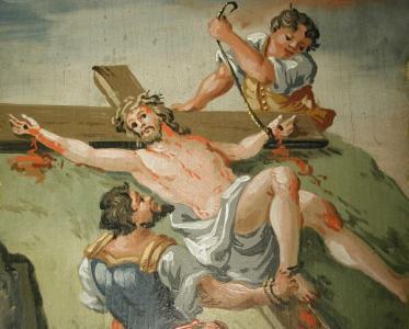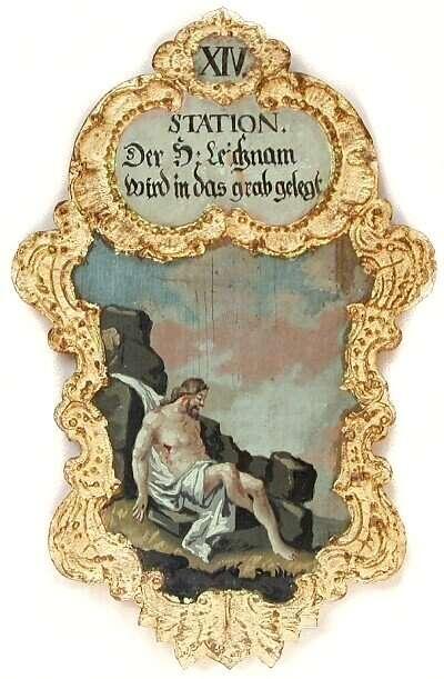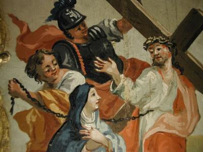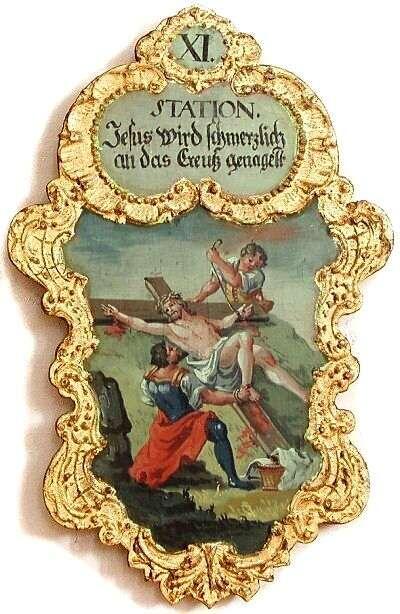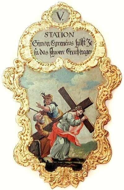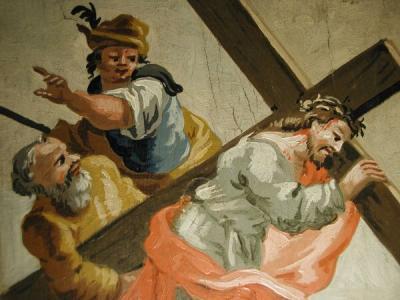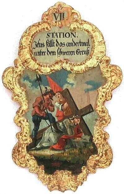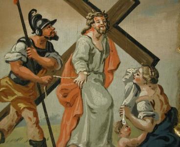 Der Kreuzweg in der kleinen Jakobskirche in Walchensee ist wohl im 18. Jahrhundert nach Vorlagen aus Augsburg entstanden. Diese Vorlagen wurden im Auftrag des Bischofs als einfarbige Stiche gedruckt und dienten den vor Ort tätigen Künstlern als Orientierung bei ihrer Arbeit.