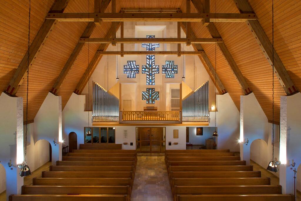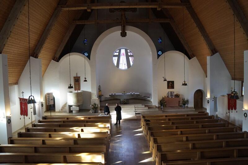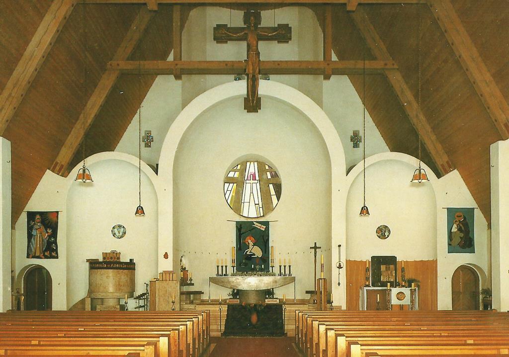 Die Pfarrkirche St. Ulrich wurde 1959/60 nach Plänen des österreichischen Architekten Prof. Clemens Holzmeister (1886-1983) erbaut, der dem ,Klösterl' einen „größeren Bruder" geben wollte.