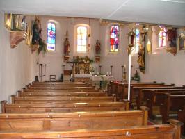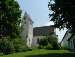 Ehemalige spätromanische oder frühgotische Chorturmkirche. Die jetzige Kirche aus dem 16. bzw. 17 Jahrhundert wurde unter Beibehaltung des Turms und eines Teiles der nördlichen Kirchenschiffwand 1913 um 5 Meter nach Westen verlängert. Dabei wurde die jetzige Flachdecke eingezogen und die Wendeltreppe an der Nordwestecke angebaut. Aussenrenovierung: 1955. |