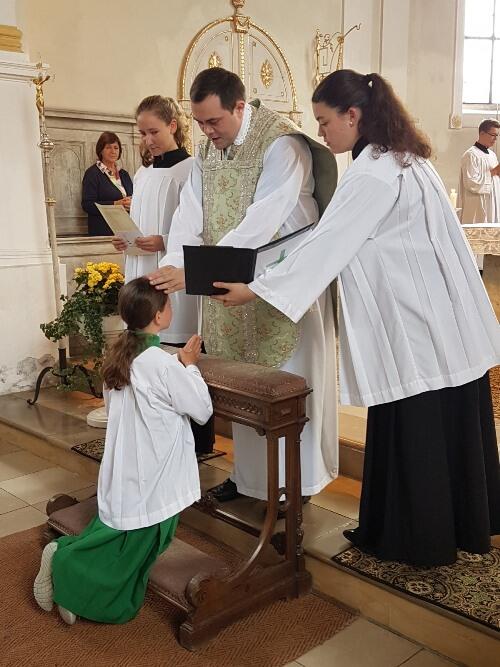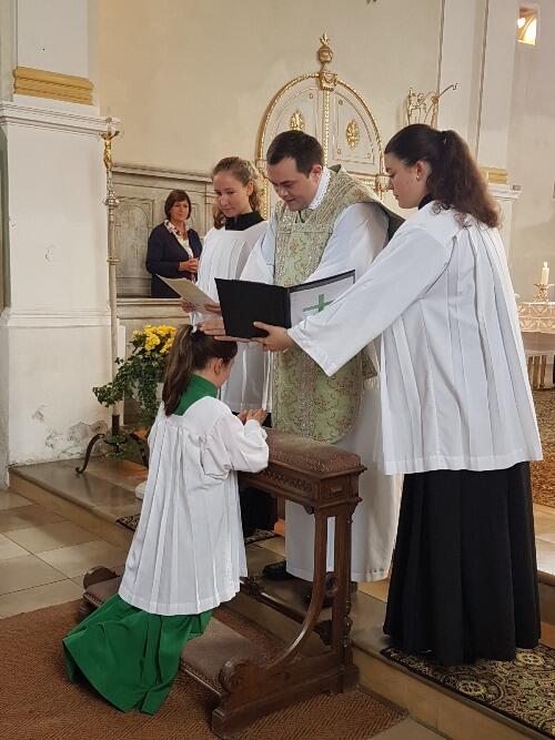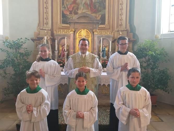Im heutigen Pfarrgottesdienst wurden 3 neue Ministranten durch H.H. Offizialatsrat Alexander Lungu in die Ministrantengruppe der Pfarrei St. Martin, Baindlkirch aufgenommen.