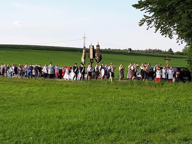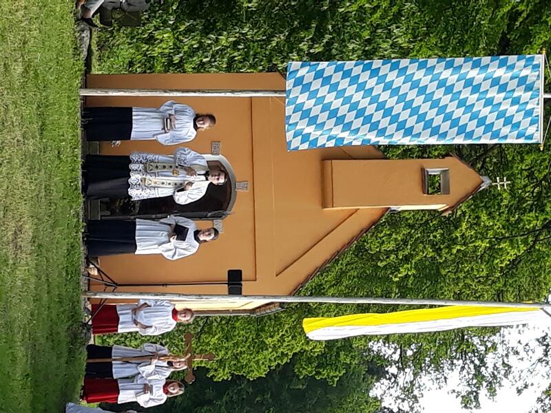 Neben H.H. Offizialatsrat Alexander Lungu nahmen auch die Erstkommunionkinder, die Blaskapelle "Högl-Buam" und die Fahnenabordnungen der Eismannsberger Vereine am Kirchenzug und an der feierlichen Maiandacht teil.