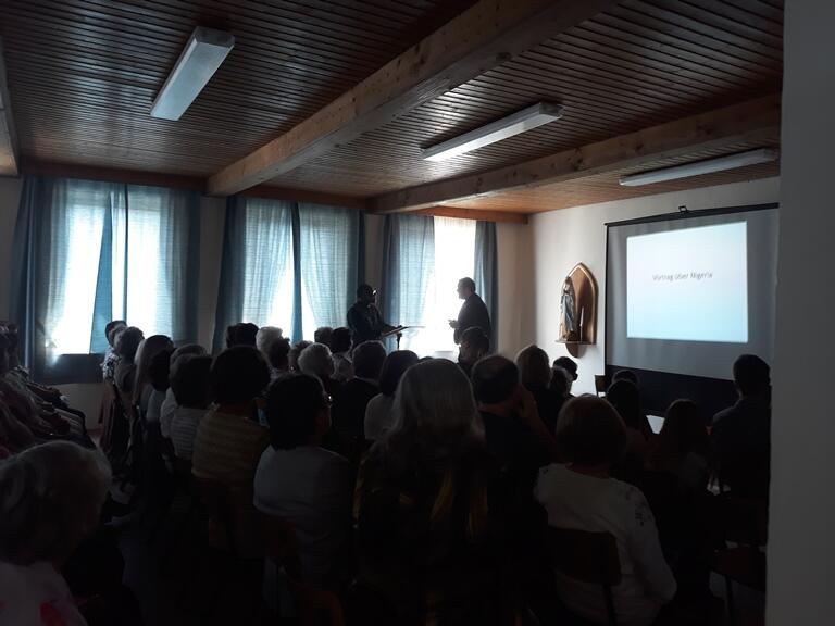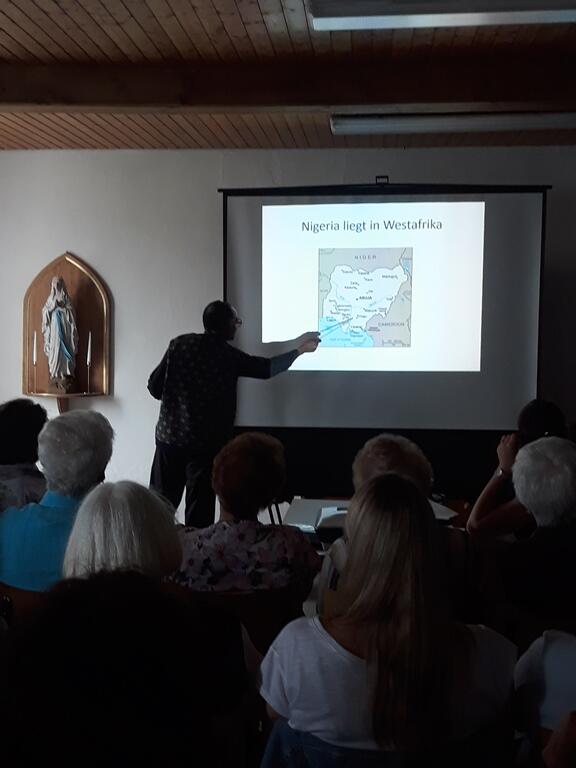 Ca. 60 Besucher verfolgten aufmerksam seine Ausführungen über sein Heimatland Nigeria sowie seine dortige Pfarrei und das Pfarreileben.