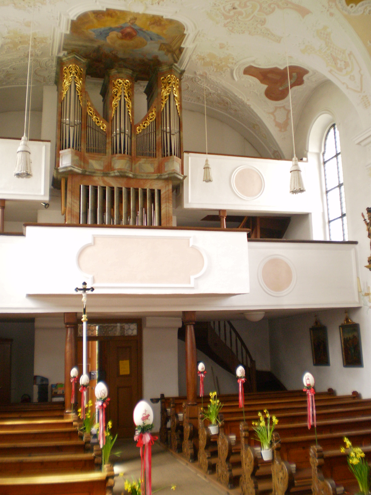 1822 Erweiterung der unteren Empore und Neuerrichtung der oberen Empore für die Ledigen durch Pfarrer Gruber