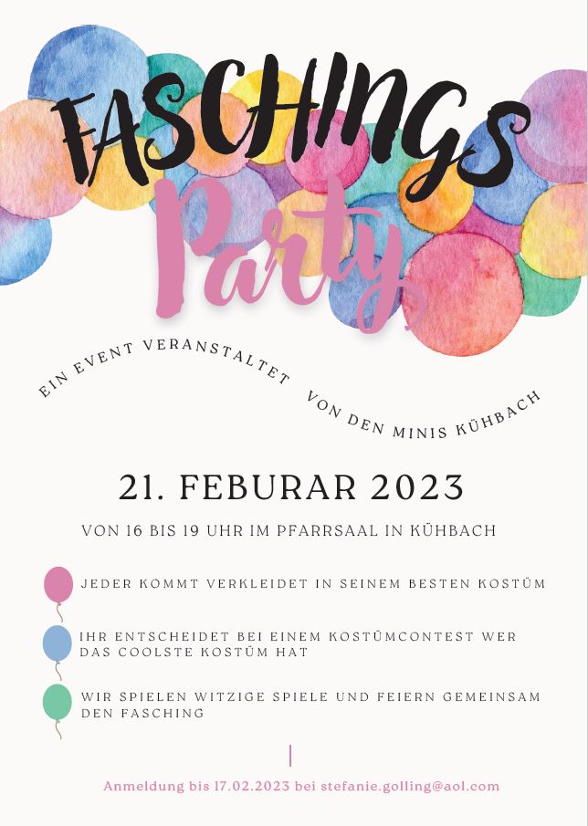 Alte Traditionen wie "Heilig-Drei-König" und "Palmsonntag" sind in Kühbach immer noch lebendig. An "Heilig-Drei-König" sammeln die Ministranten in prächtigen Gewändern als Kaspar, Melchior und Balthasar Geld für Kinder in der Mission. Am Palmsonntag verteilen die Ministranten, die während des Gottesdienstes geweihten Palmzweige, welche vorher von ihnen gesammelt wurden.