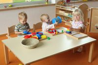 Im Kreativbereich kann Erfahrung mit Fingerfarben, Kleister, Knetmasse, Ton und anderen Mal- und Bastelmaterialien gesammelt werden, während im Sortierbereich Spielmaterialien bereitstehen, die im Zusammenhang miteinander stehen und zum Sortieren animieren.