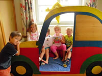 Den Kindern wird aus den Büchern vorgelesen oder sie können diese selbständig betrachten. Sie können sich hier auch zur Entspannung zurückziehen. Die Beschäftigung mit Büchern sind Kernelemente der „Literacy“ - Erziehung (siehe 6.3.3 Sprache/Literacy).